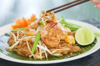Thai cuisine is the national cuisine of Thailand. Thai cooking emphasis is on lightly prepared dishes with strong aromatic components and a spicy edge. Some of the popular Thai dishes include Thai curries, Som Tam Salad, Tom Yum Soup, Pad Thai noodles, Satay, among others